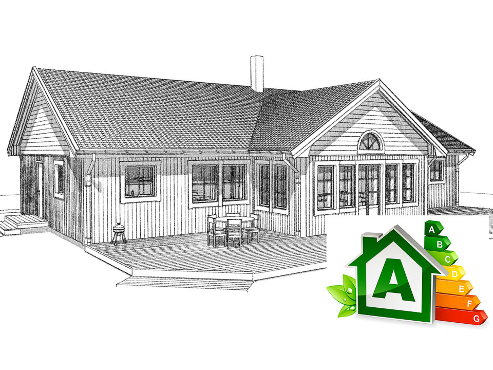 Energiklassningen som görs på nya hus ser likadant ut som när du t ex köper vitvaror eller en lampa. Husets energiförbrukning klassas från A-G. Värdet som ligger till grund för klassningen är primärenergitalet, ett värde som speglar husets energiprestanda. I beräkningen tar man också hänsyn till vilken värmekälla man använder och var i landet huset ska byggas.